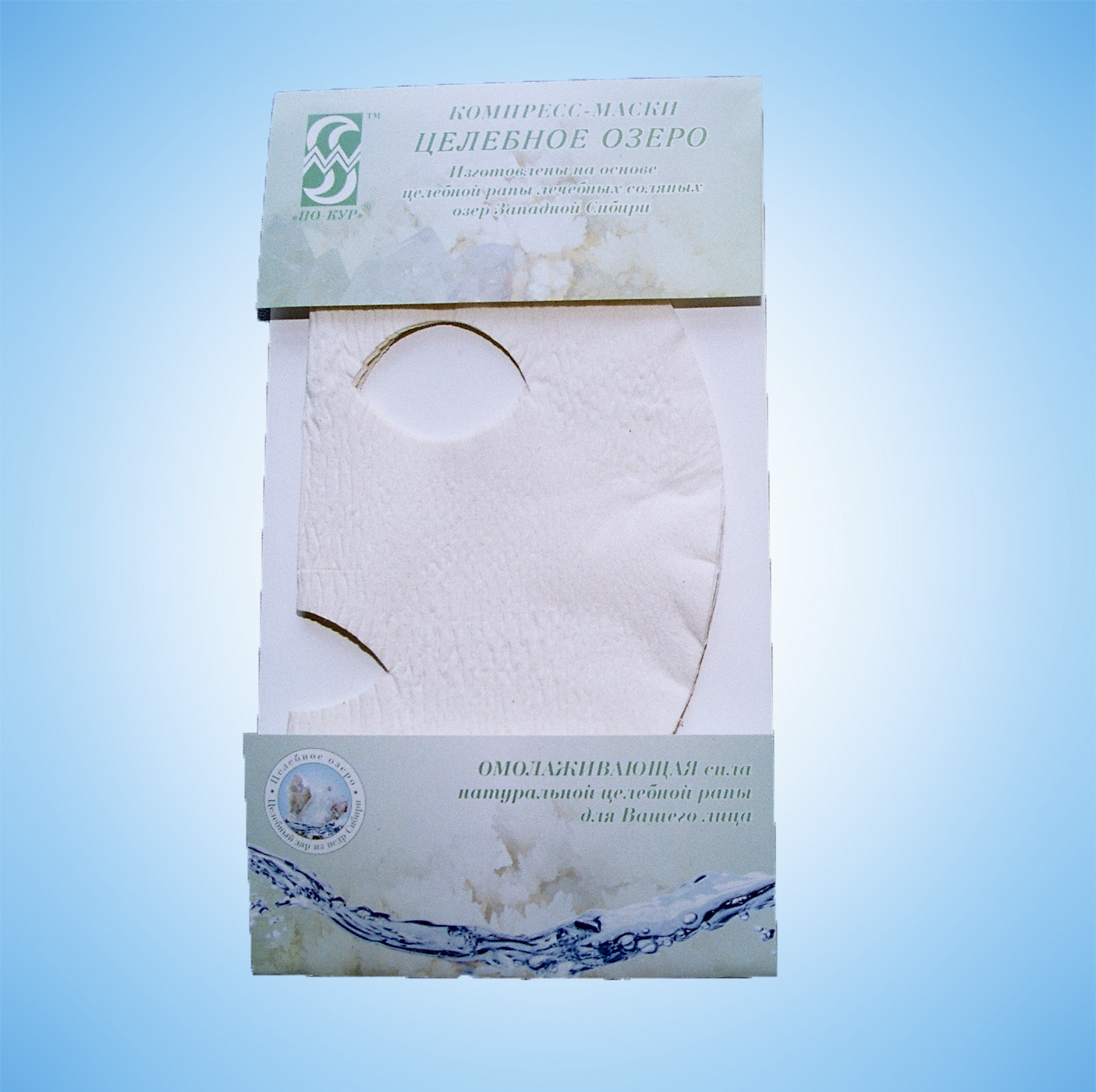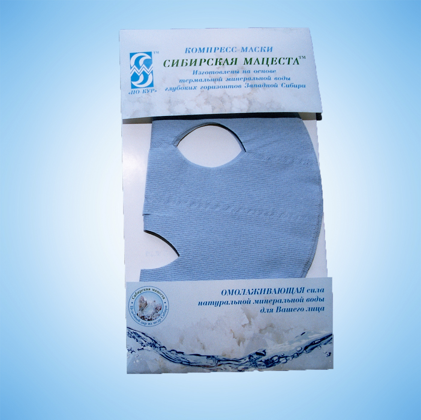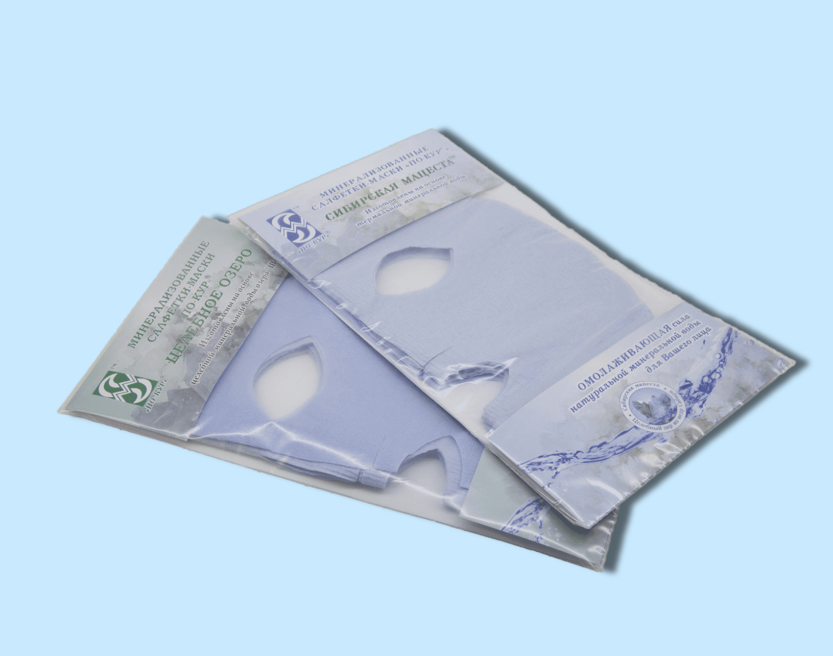 Маски представляют собой сухие целлюлозные гидрофильные салфетки в форме овала лица и содержат в минерализованном виде биологически-активные компоненты глубинных минеральных вод лечебных озер Сибири и рапы лечебных озер Алтая.